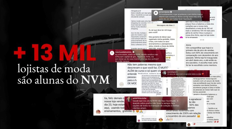 Não necessariamente! Tenho casos como de uma aluna que começou com 30 peças em casa e já fatura mais de R$30 mil. O NVM é para quem quer tratar sua loja de moda como empresa, independente do tamanho.